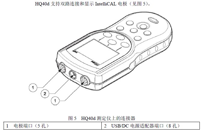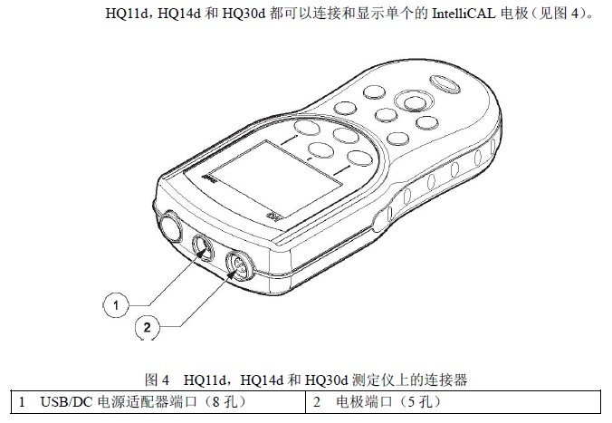 測定儀可以接受 IntelliCAL電極(HQ11d僅能測pH; HQ14d僅能測定電導 率) |